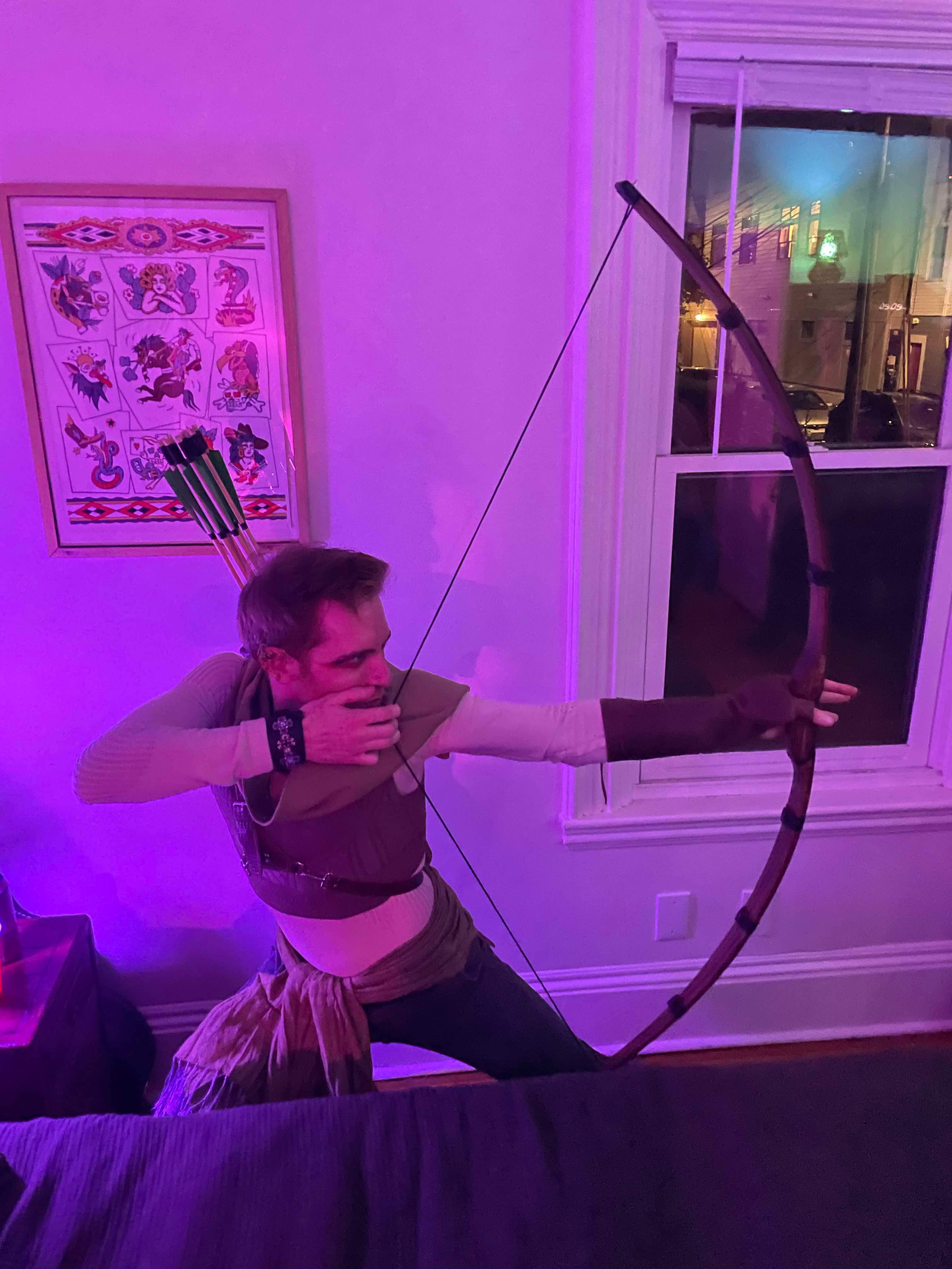 I went to the King Richard’s Faire this year with a bunch of friends, and i threw together a quick outfit: sort of elven, kinda woodsy. Friends said “you should just do this for Halloween!” Which is what I did. The outfit needed a bow, and I thought it would be a fun reason to try making a bow for the first time. I took a week and a half to quickly build a 40 lb pull read oak 64” longbow, loosely following this build process. Here are a bunch of pictures outlining the build process, I’ll add more description and information soon. The process was pretty fun, I’m excited to make another one!